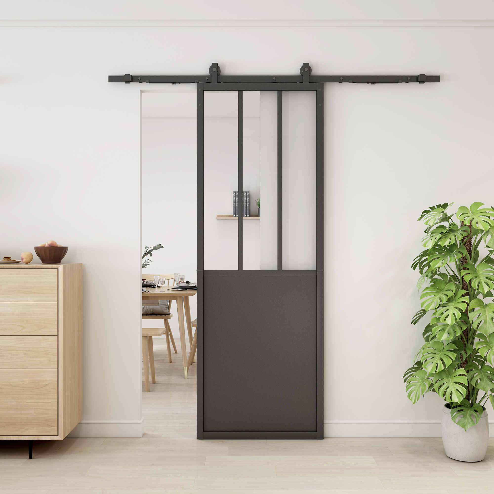 This elegant glass barn door is not only is trendy decor for our home, but also a space-saving door! Clear tempered glasses perfectly allow natural light in. Sliding doors save space and allow for use in tighter places where a normal swinging door may not be ideal. Such as kitchen, living room, closet, study room, and so on.