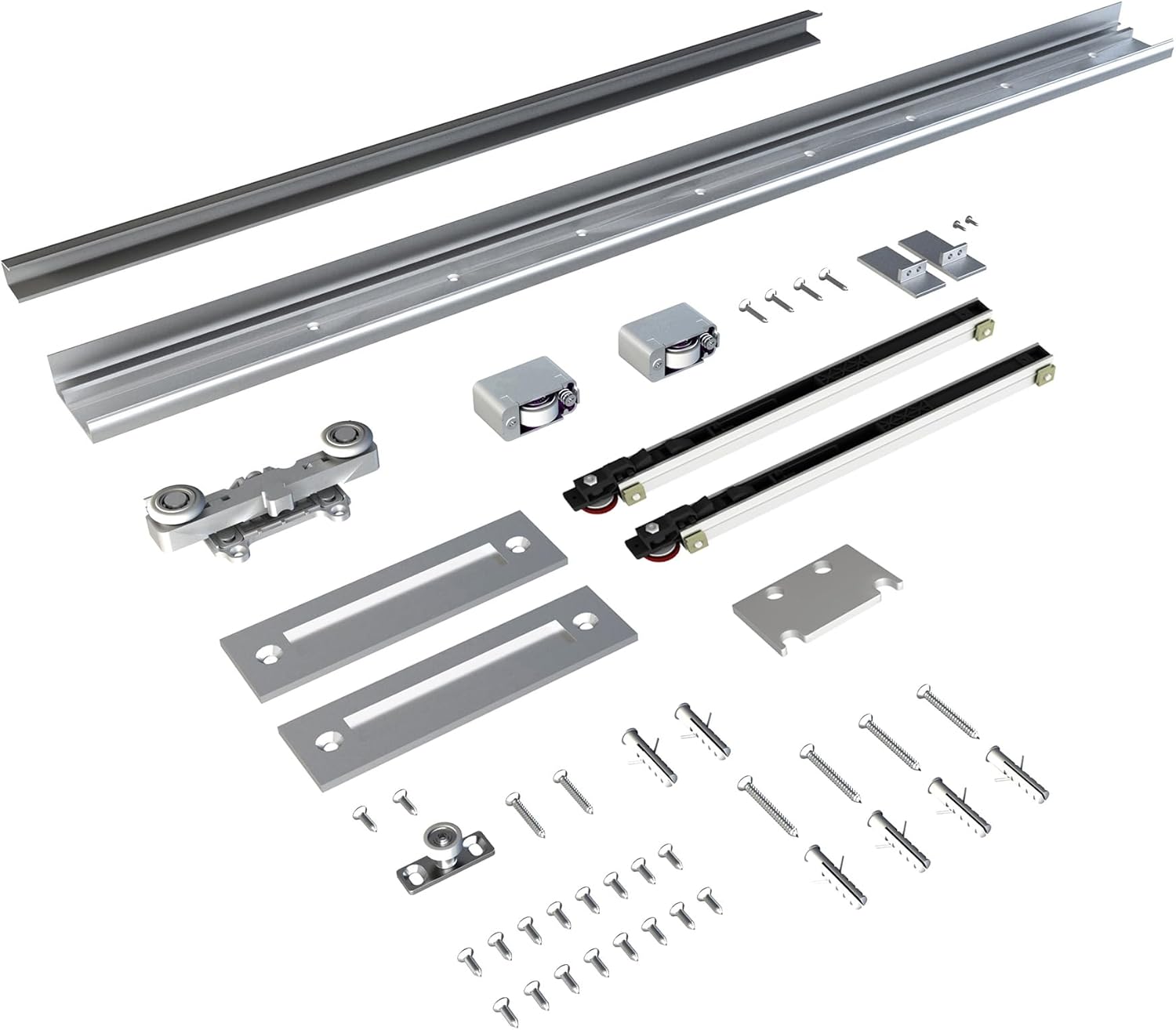 - Premium Hardware: Aluminum structure provides solid support for the door, long-lasting and durable. Precision-designed upper and lower sets of rollers ensure your door can slide smoothly. Two soft-close mechanisms ensure that the door soft open and soft close, no noise and hitting.