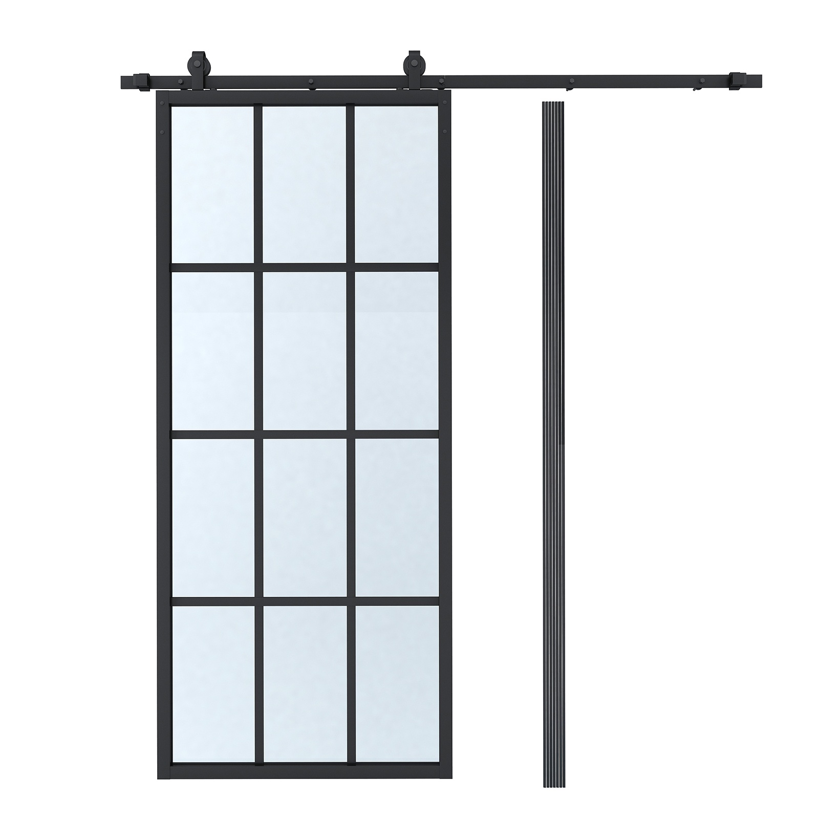 4 Panel Modern French Sliding Clear Glass Barn Door (Sliding Hardware not Included)